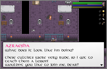 The graphics that I used for this game are all taken from itch.io. Most of the characters came from Elthen's Pixel Art Shop. The tilesets were created by pipoya and Elthen's Pixel Art Shop, and most of the menu graphics were created by pixelfrog. The background music was created by Tim Beek.